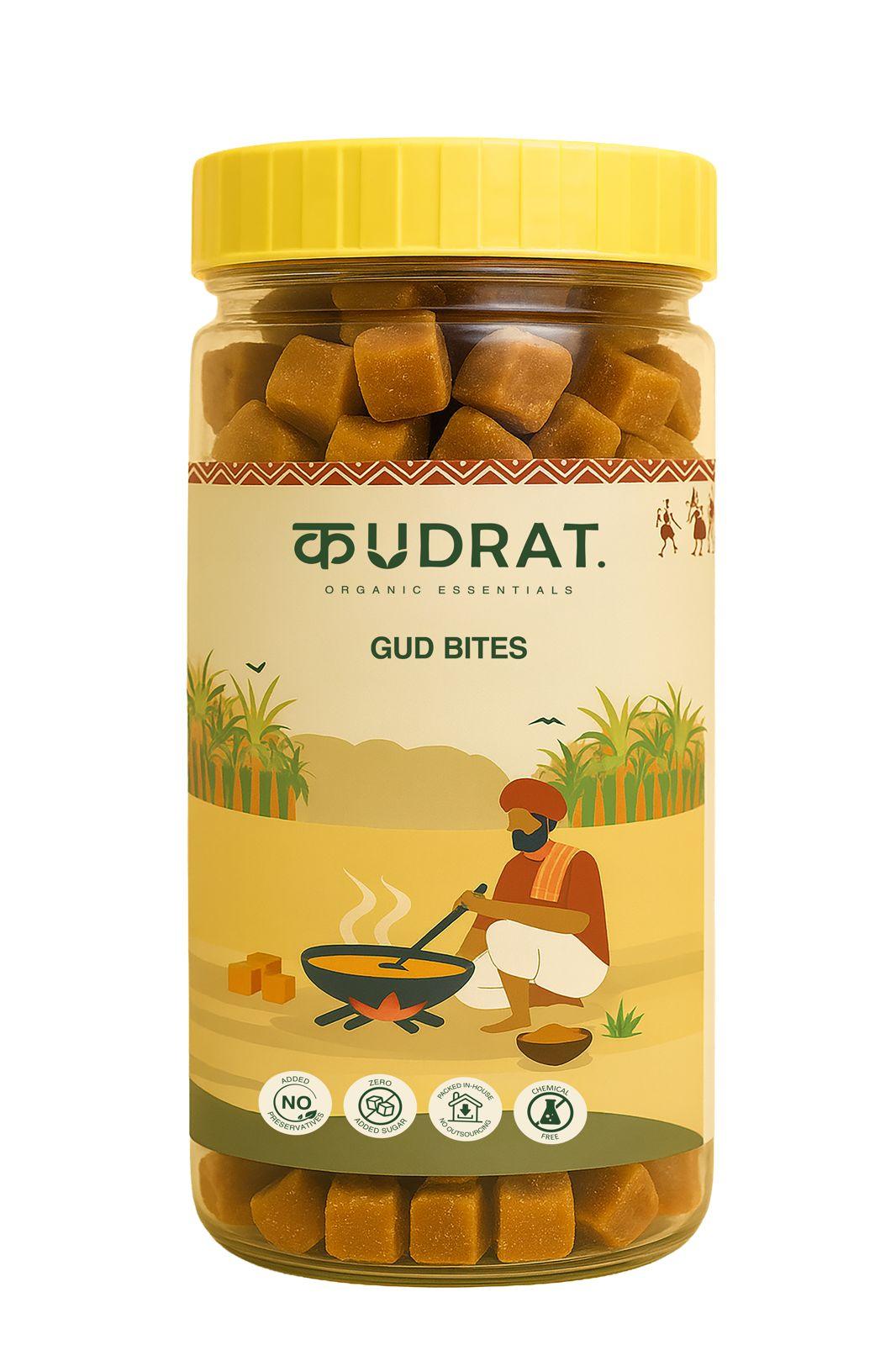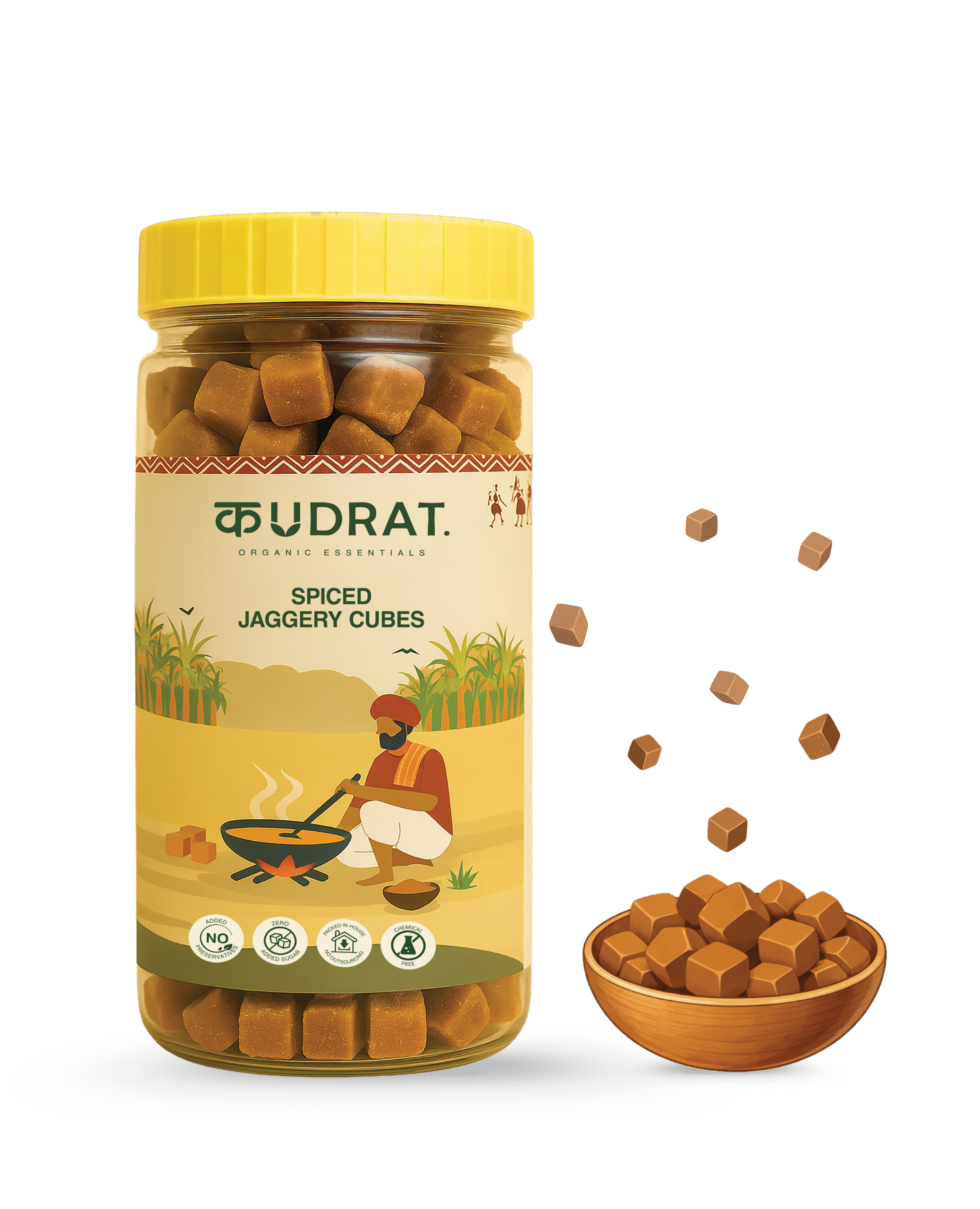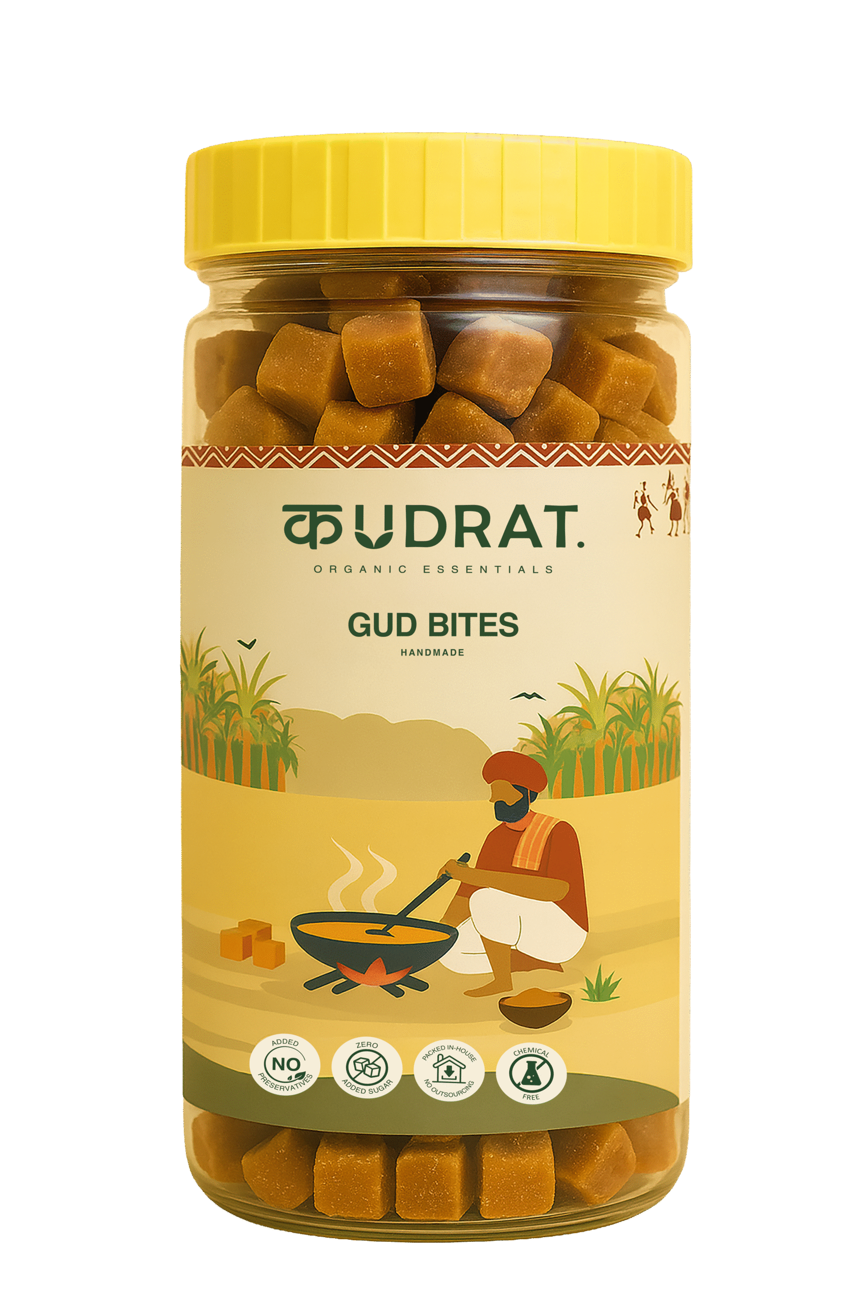 Kudrat Organic and Living Essentials brings you nature’s sweetness with Raw Sugar, Jaggery Powder, and Jaggery Cubes,Kudrat Gud Bites each a healthier alternative to refined sugars.